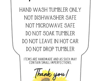 for "Free Printable Care Cards For Tumblers : Tumbler Care Card Printable Cutout Silhouette Cameo | Etsy"